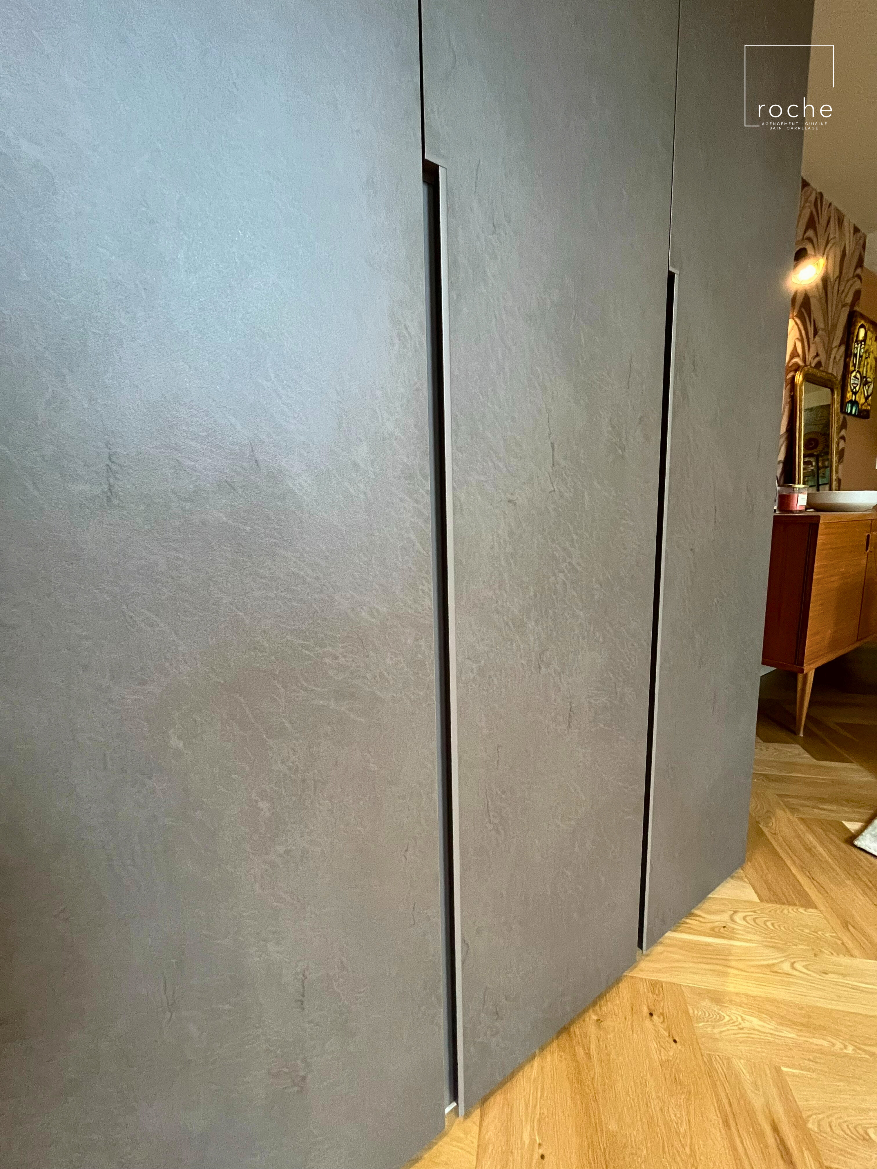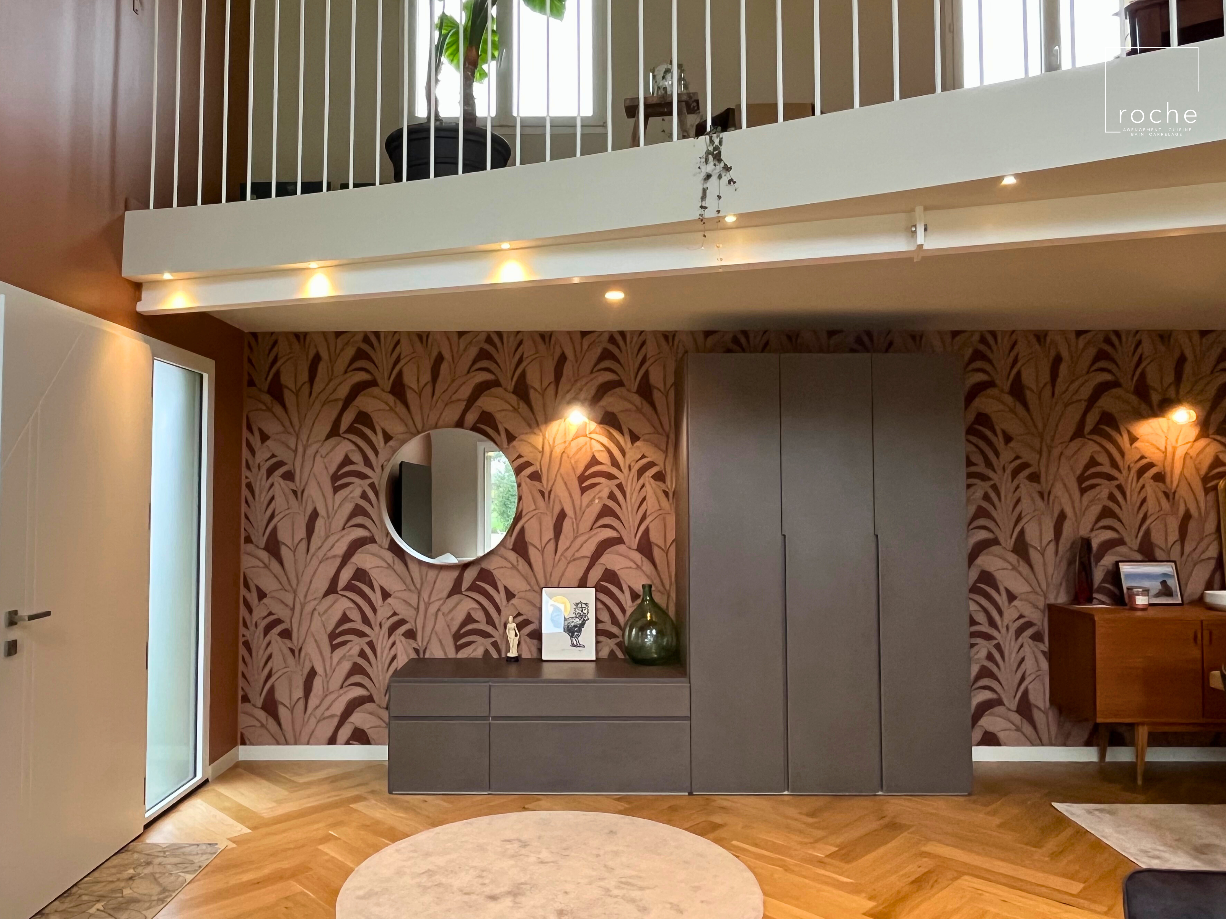 Agencement meuble d'entrée gris texturé