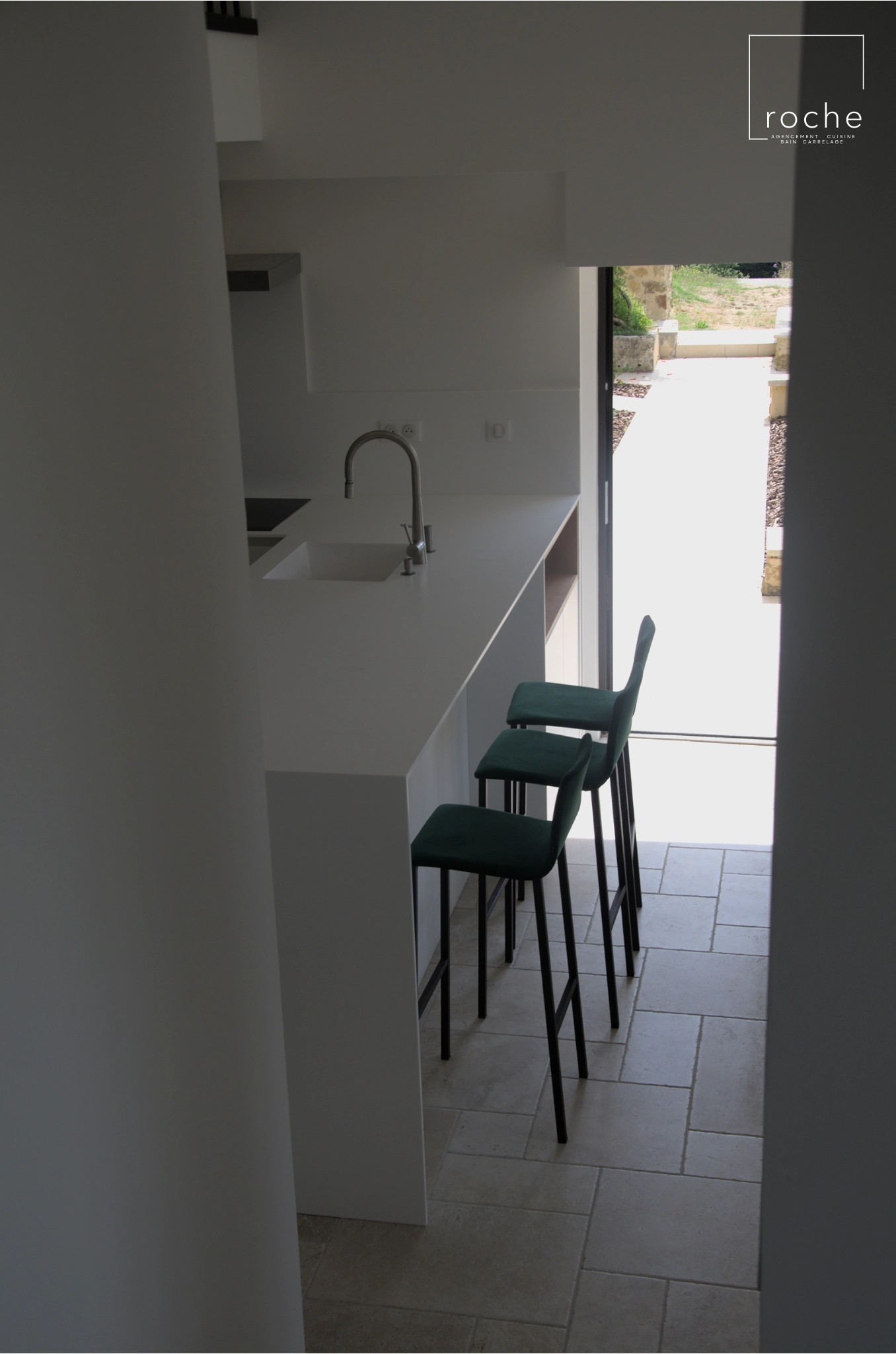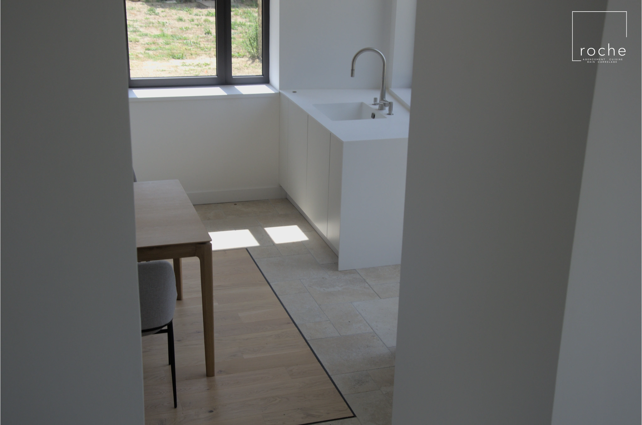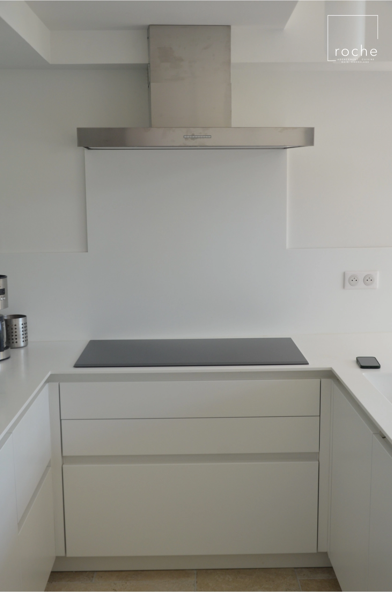 Cuisine blanche épurée et solid surface