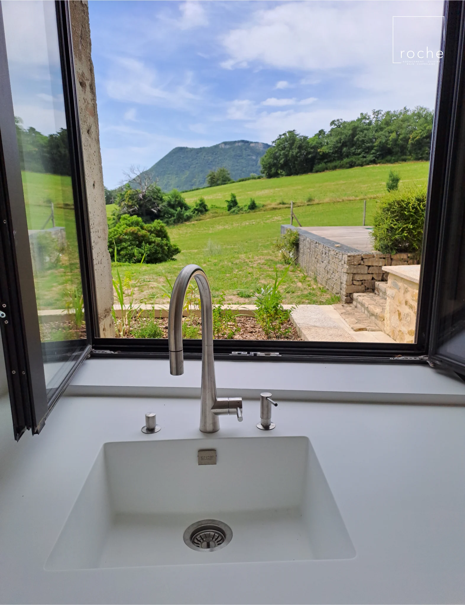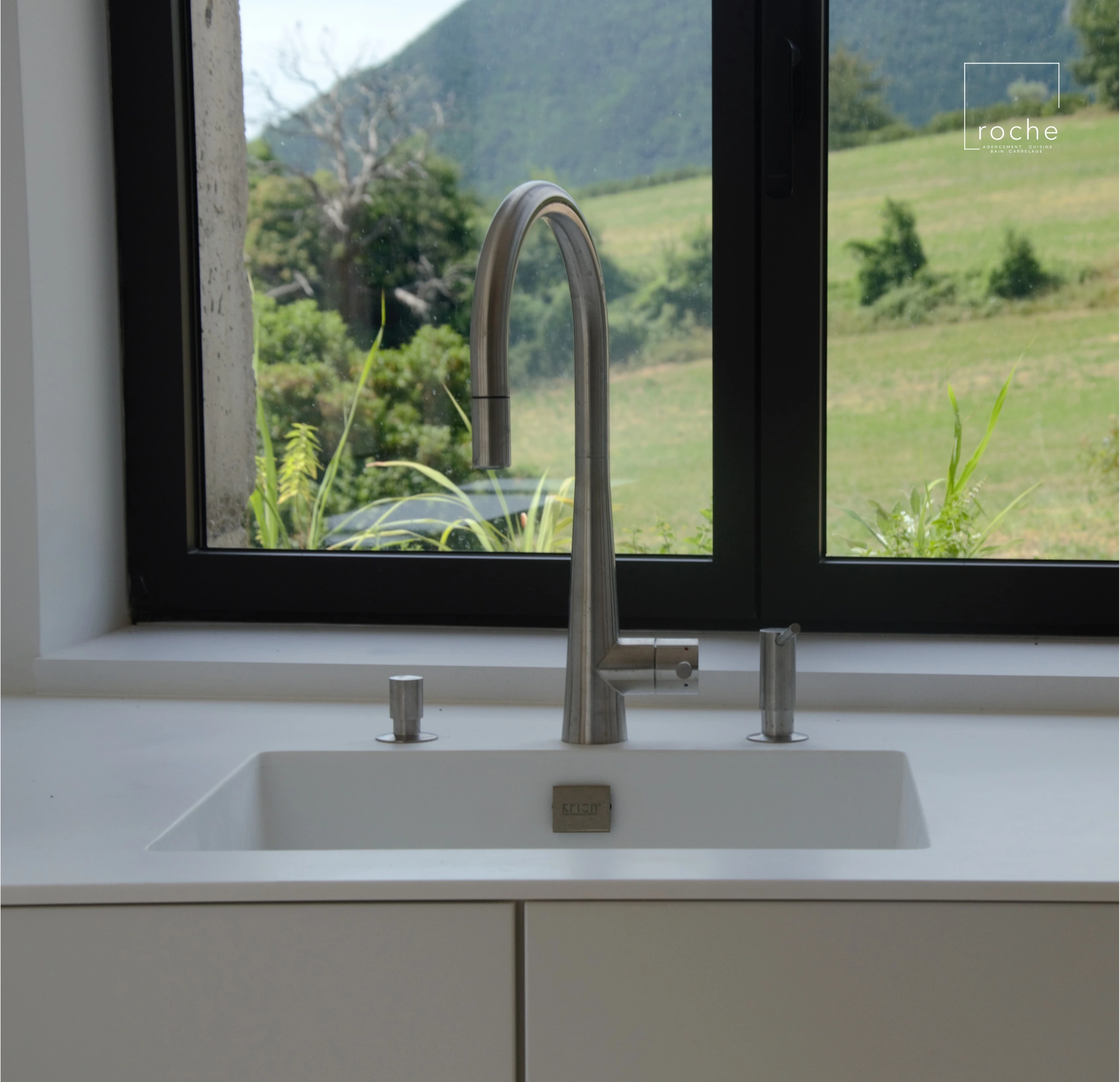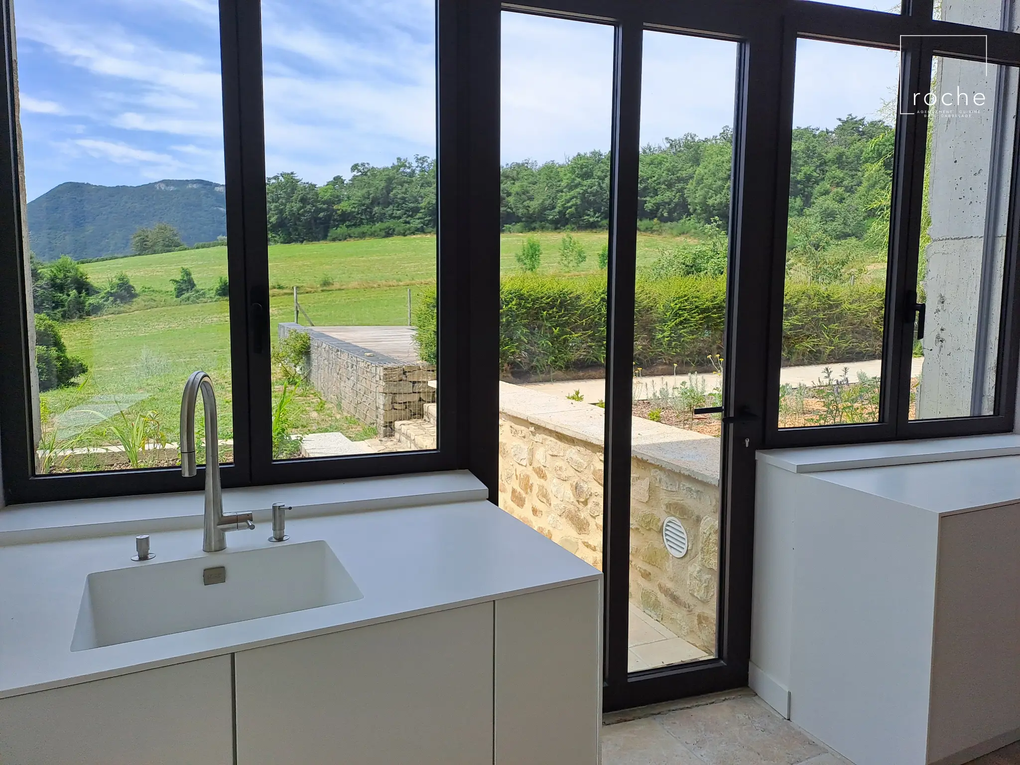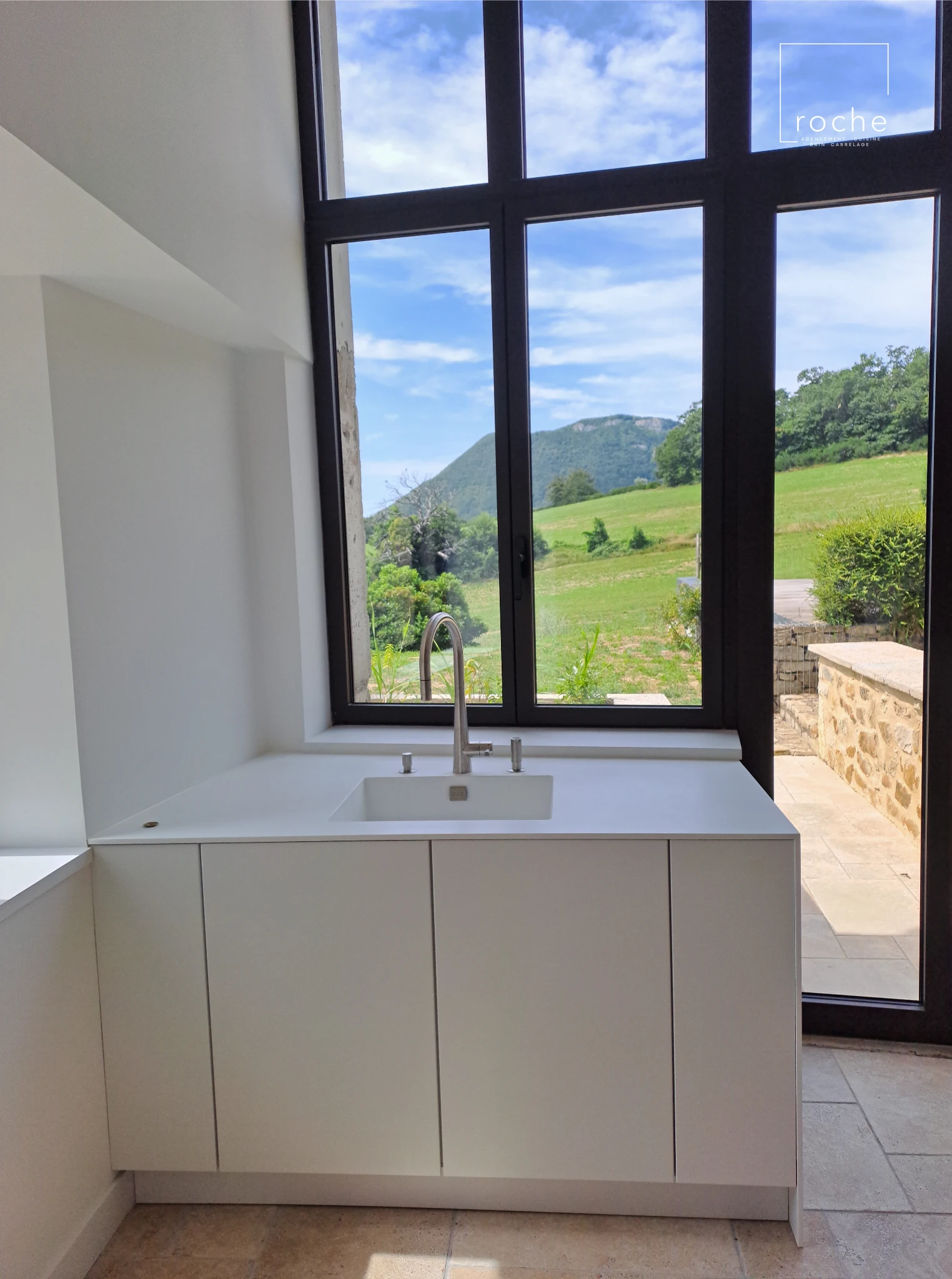 Cuisine blanche épurée et solid surface