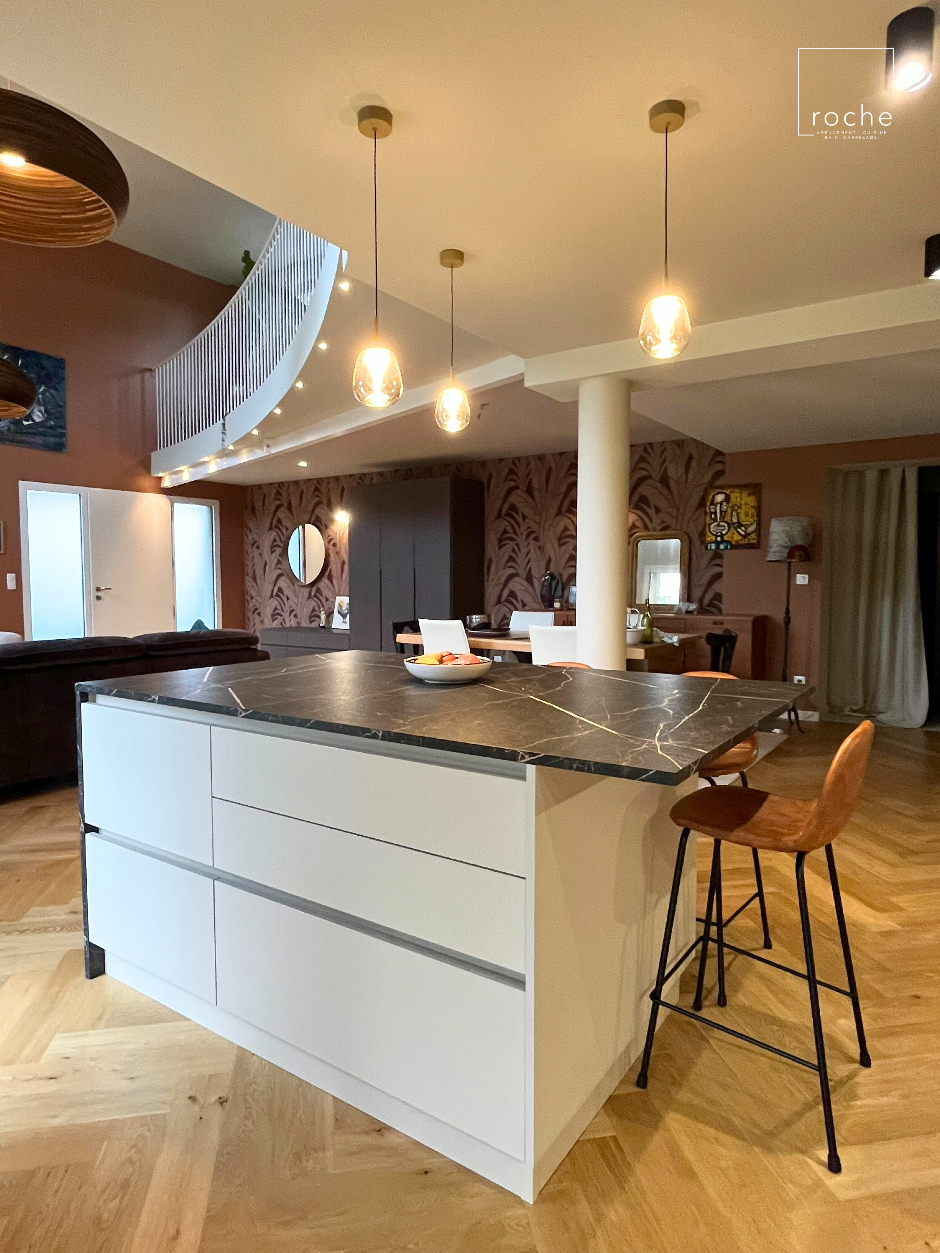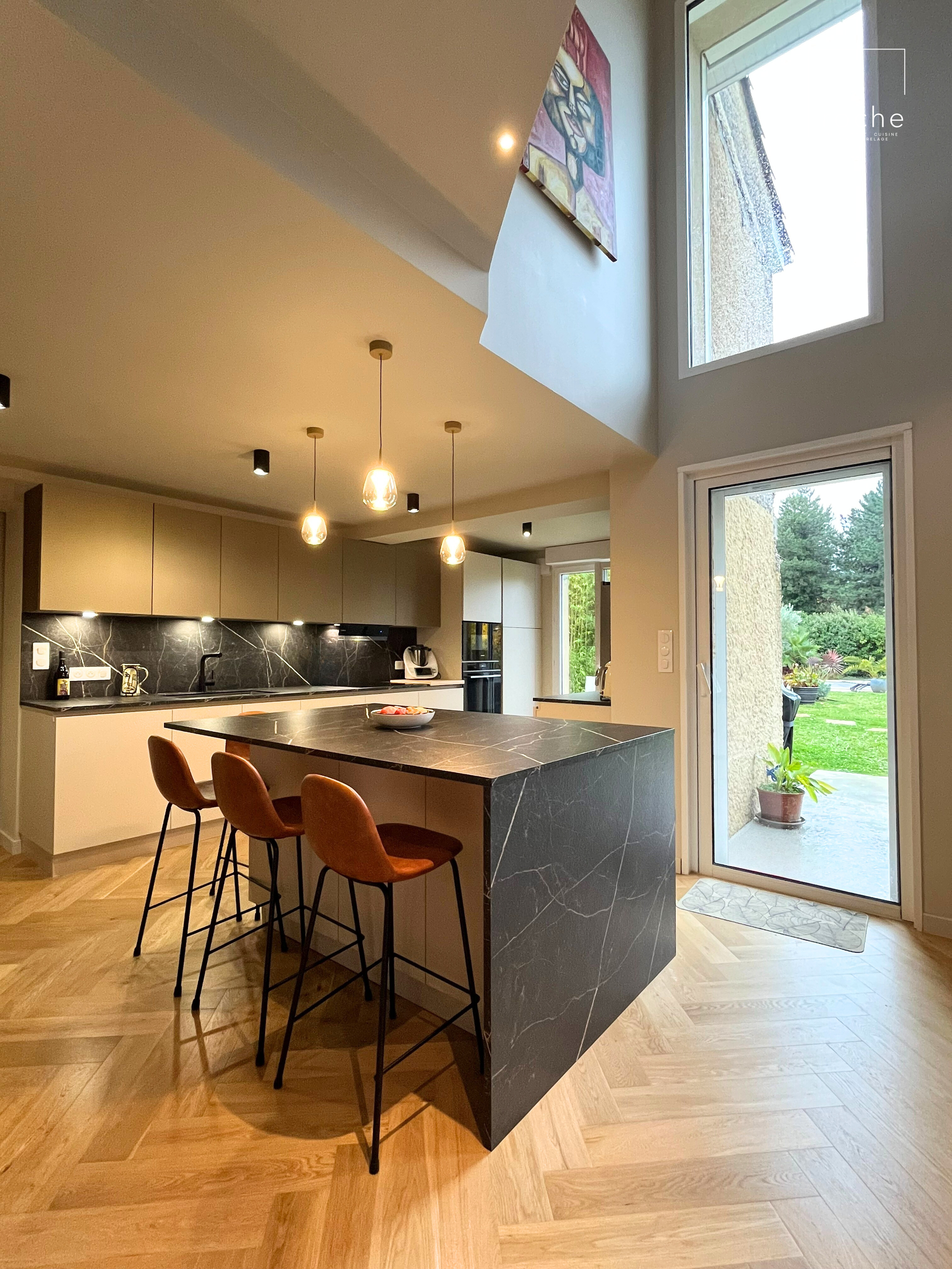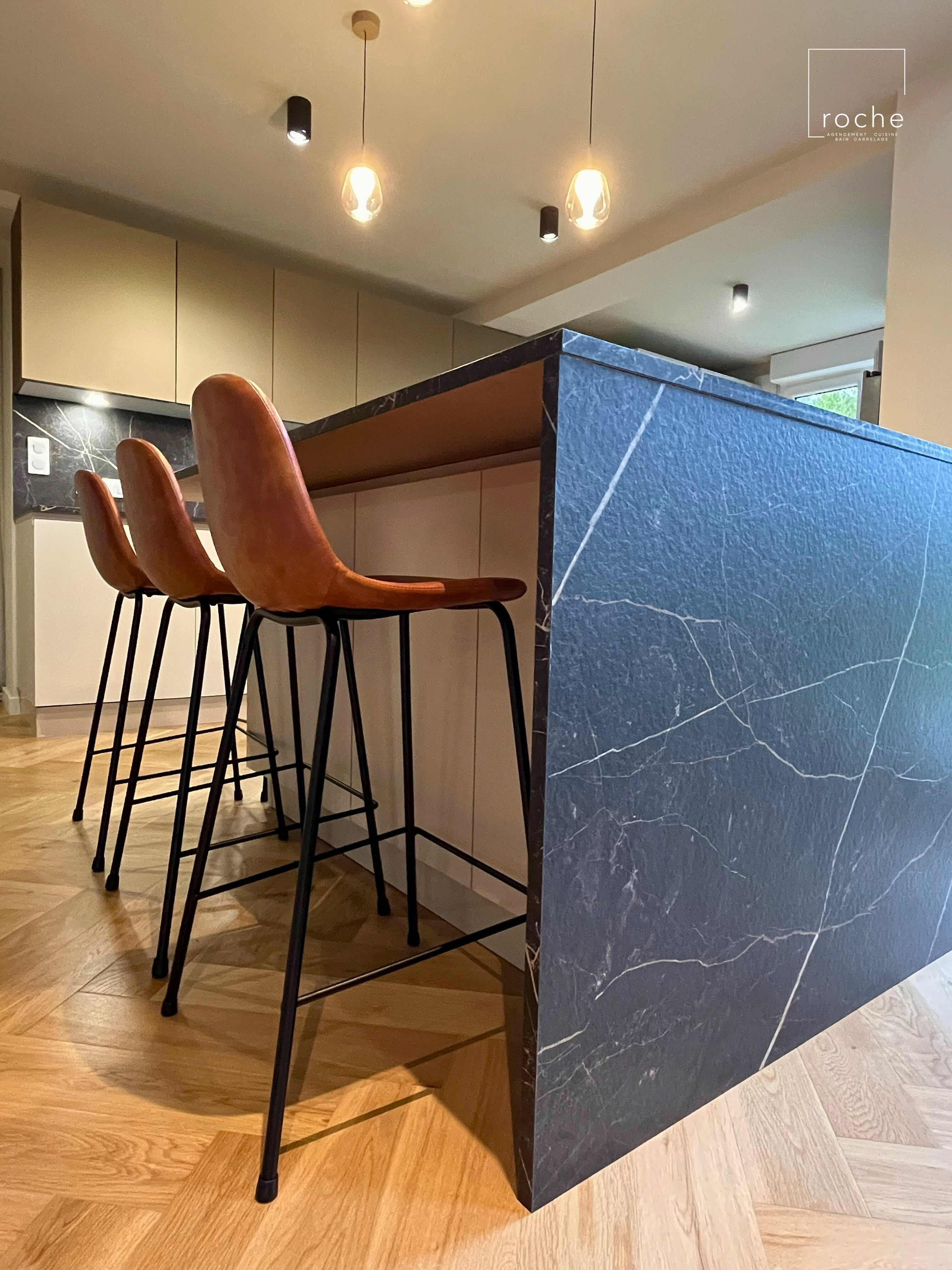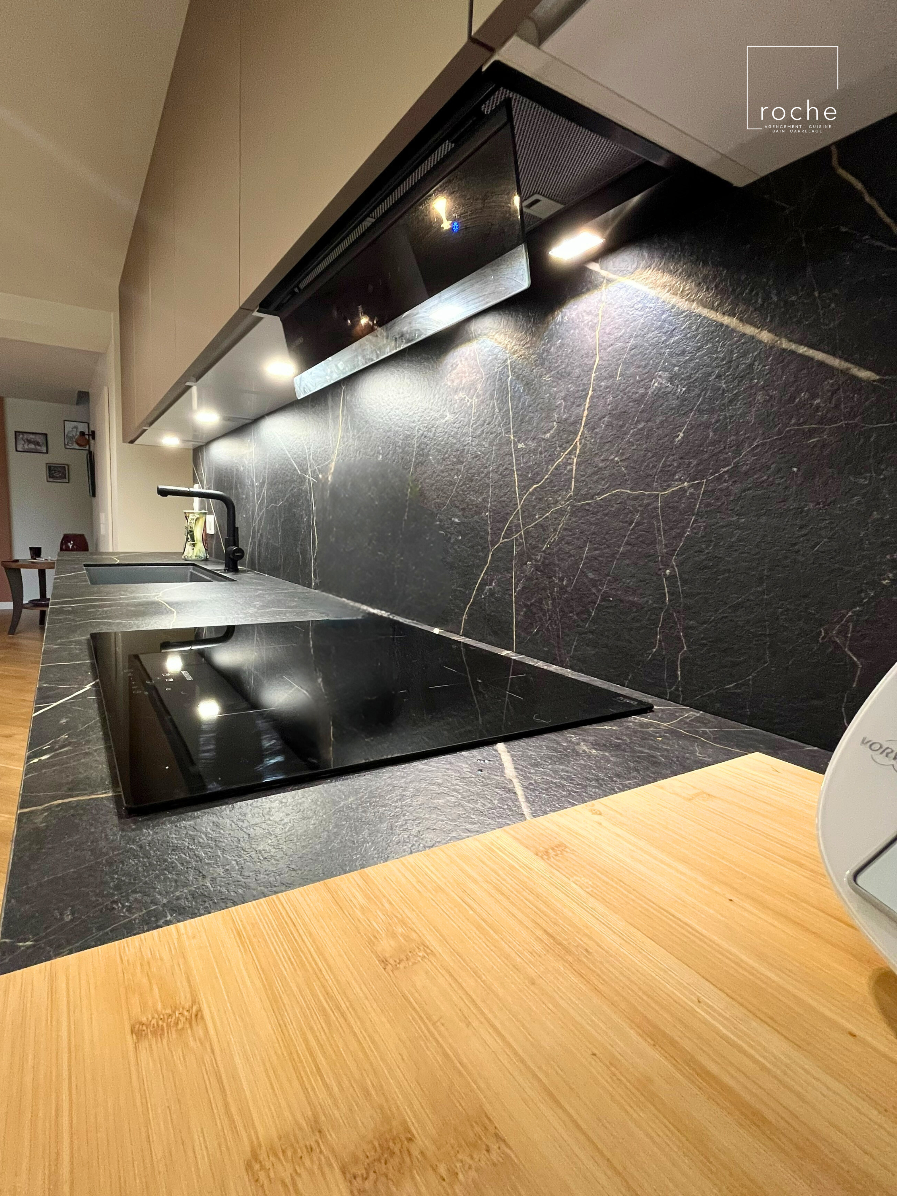 Cuisine avec îlot en céramique noire